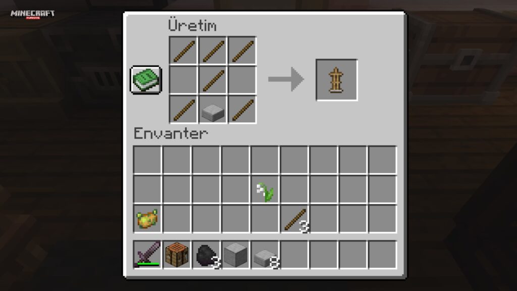 Şimdi craft masasına geçelim. 3×3’lük alana malzemeleri şu şekilde yerleştirin:
