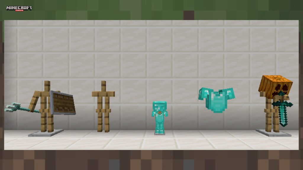 Minecraft’ta elmas zırhı elde etmek kadar onu sergilemek de ayrı bir keyif. Sandıkta saklamak yerine duvarın önünde gururla sergilemek isteyen oyuncular için zırh askısı tam da aradığınız eşya. Özellikle hayatta kalma modunda sandıkların içinde kaybolan ekipmanları düzenli şekilde sergilemek isteyen oyuncular için oldukça kullanışlı.